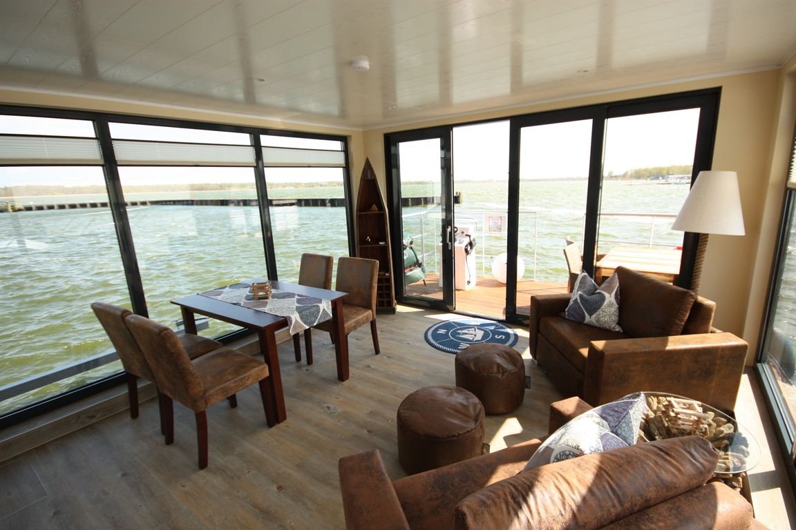 Das hochmoderne Floating 30 Hausboot ist ein Raumwunder mit viel Glas und Naturmaterialien. Es gibt eine optimale Aufteilung mit dem verglasten Wohnraum mit offener Küche, 1 Schlafraum mit direkt begehbaren Bad mit Regendusche und WC.