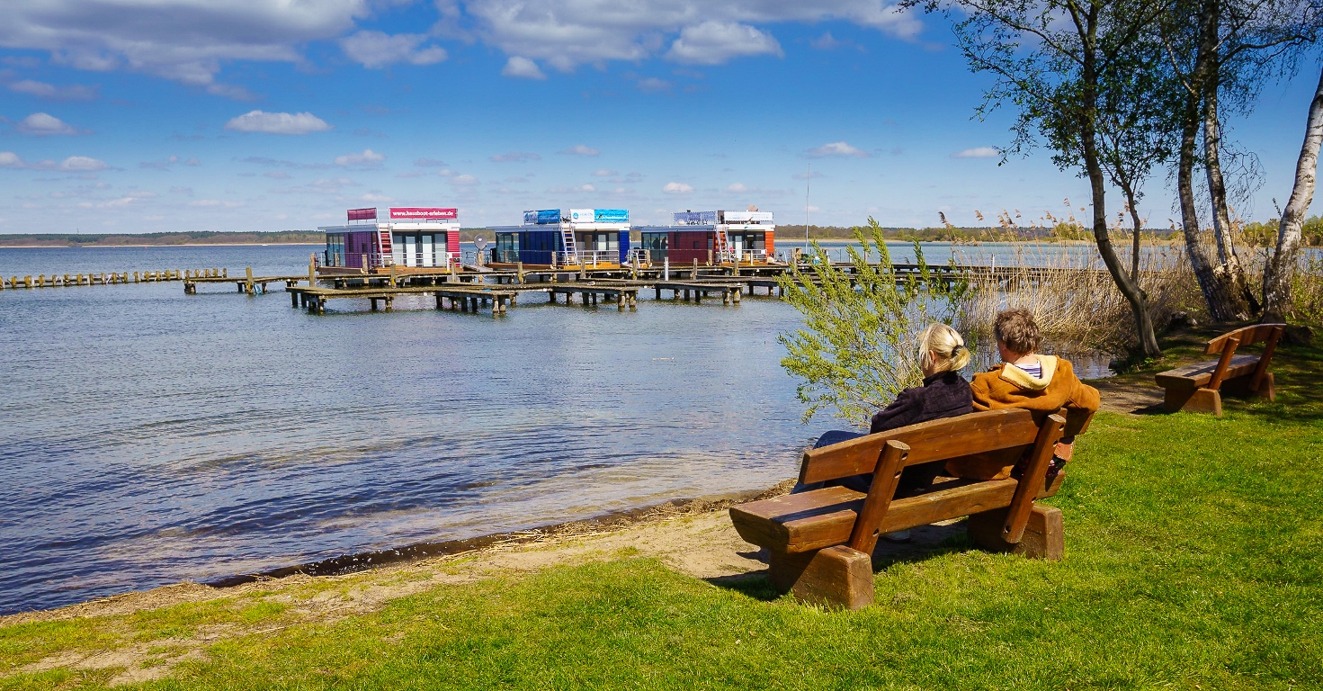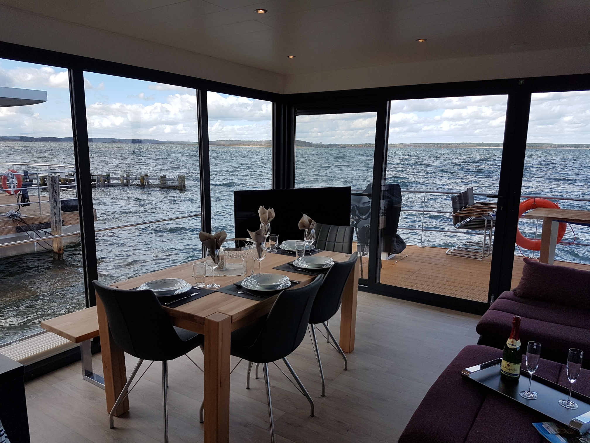 Unser Floating 44 Hausboot/Schwimmhaus steht auf dem größten Binnensee- der Müritz im Ferienland Mecklenburger Seenplatte- auch Großseenland genannt.